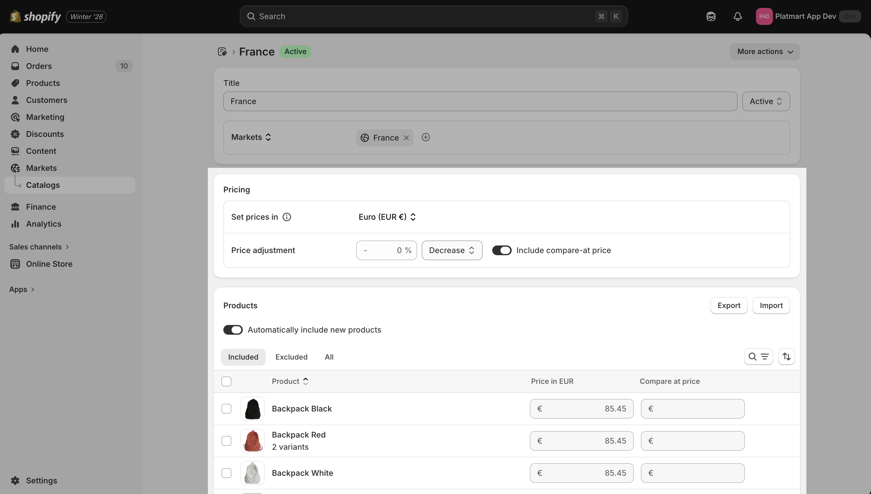 By default Shopify Market prices are based on product prices and converted from primary markets currency automatically. However, you can override prices for specific market too using price lists. And our app offers a way to bulk edit price lists for Shopify Markets.